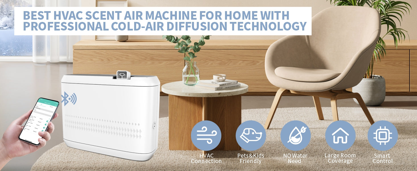 - Personalized Scent with Bluetooth App Control - Elevate your scent journey with our intelligent scent air machine, putting the power of customization in your hands. Utilizing advanced Bluetooth technology, our aroma diffuser seamlessly connects to your device, granting you effortless control over your fragrance preferences. Simply download the accompanying app and effortlessly connect via Bluetooth to unlock a world of customization options.