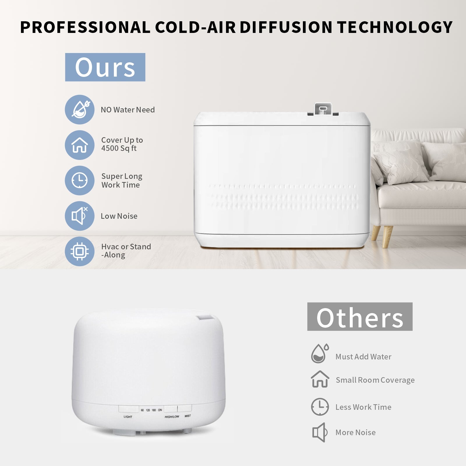 - Innovative Cold Air Diffusion System - Our scent air machine is equipped with the latest cold air compression technology that converts essential oils into micro-particles for efficient diffusion. The essential oil diffuser works by compressing cold air to create dry mist micro-particles that can scent your home or office in minutes with a high utilization rate. No Mess, No frequently cleaning.