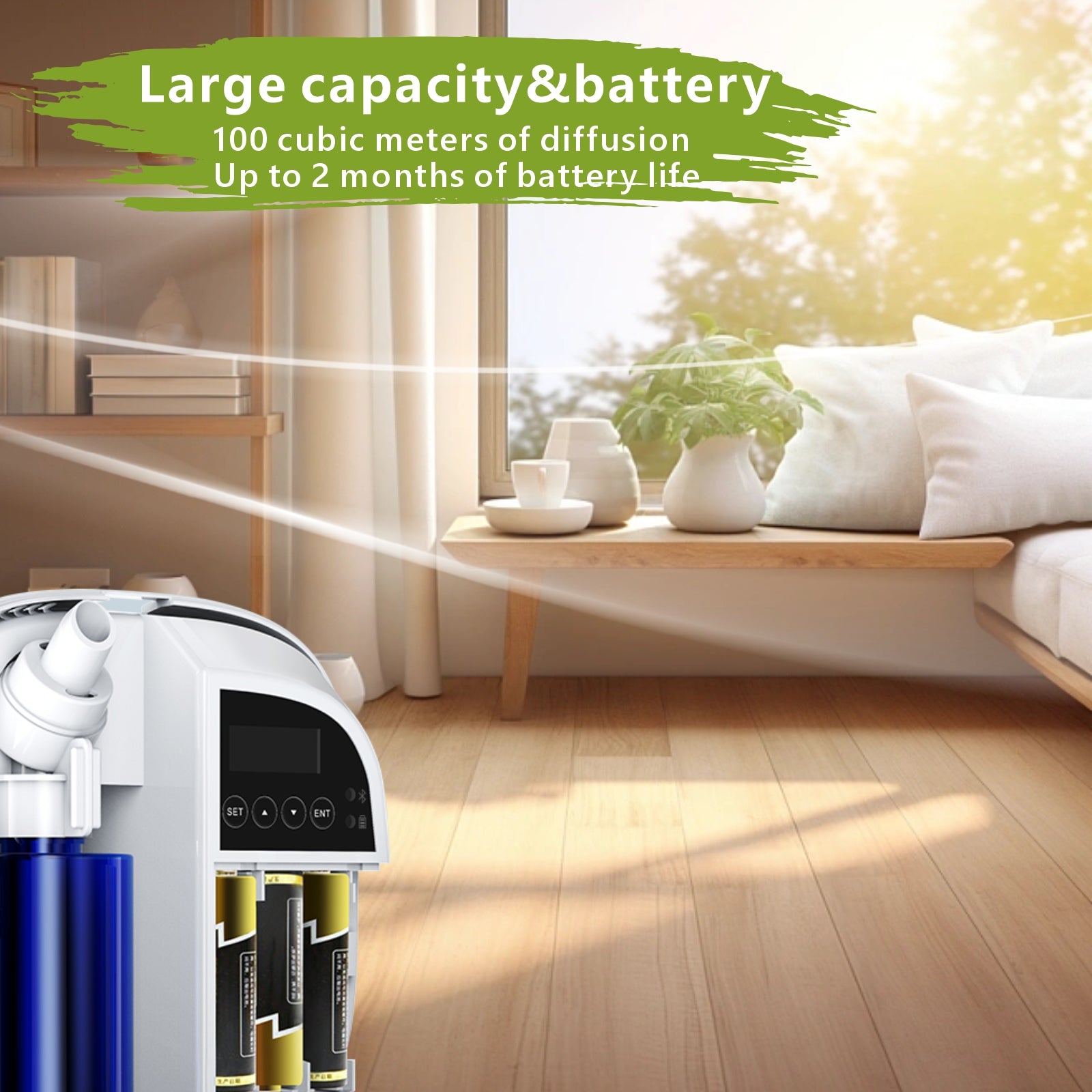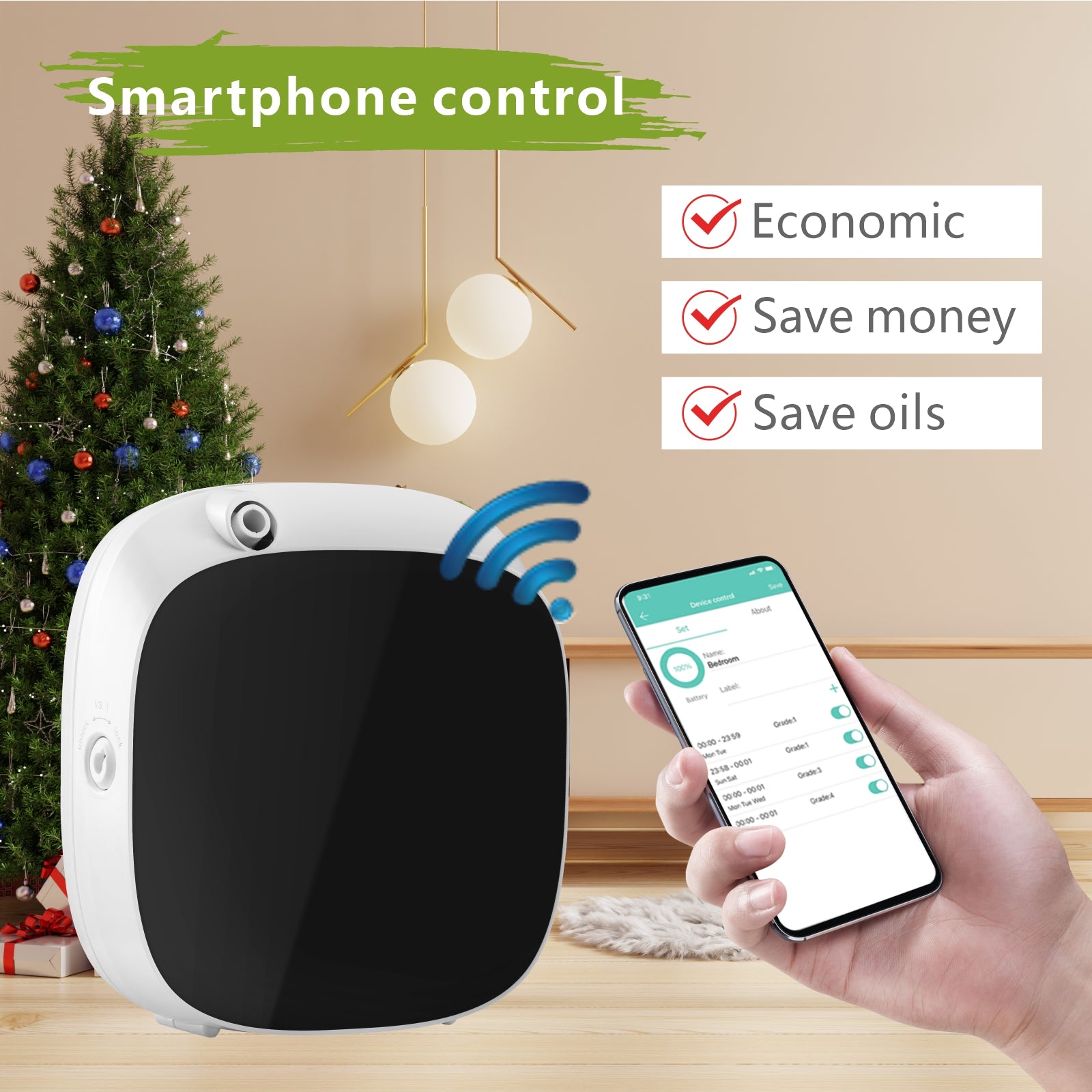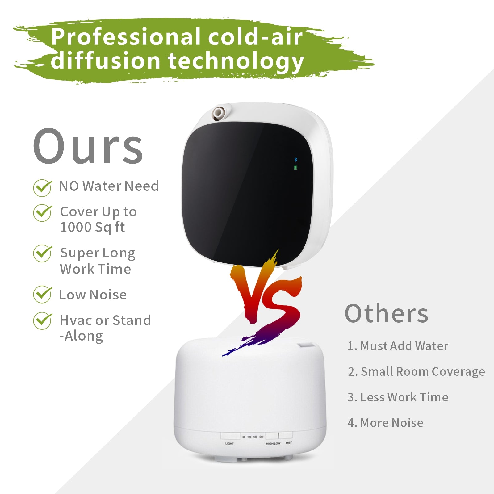 - 【COLD-AIR DIFFUSION TECHNOLOGY】: This waterless aromatherapy diffuser adopts the Cold-Air Diffusion Technology which takes the high-quality fragrance oil micro-droplets to everywhere in your home without any heat or water. Our Scent machine is very ECONOMIC, spending less than 0.5ml/h when you choose the highest grade.